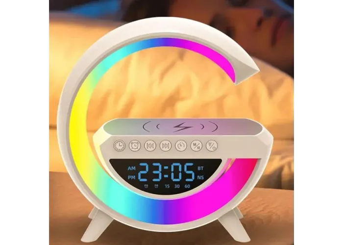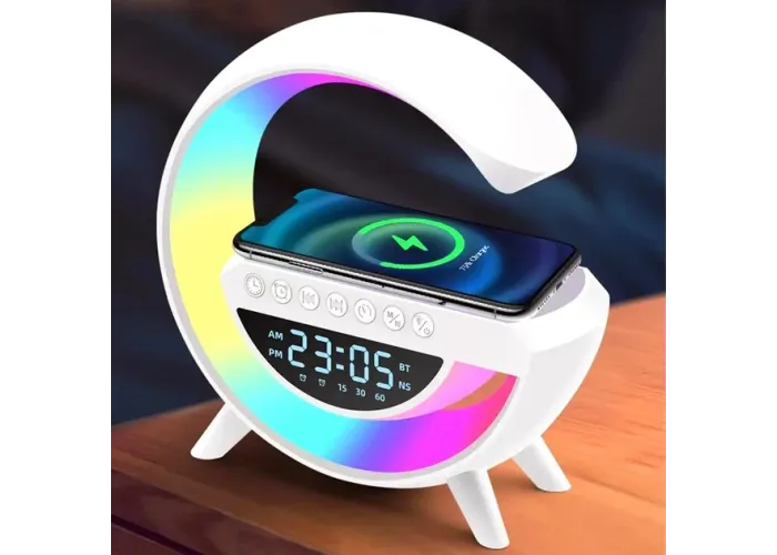 Розмістіть у свою спальню унікальний сучасний світильник із бездротовою зарядкою, будильником і динаміками!