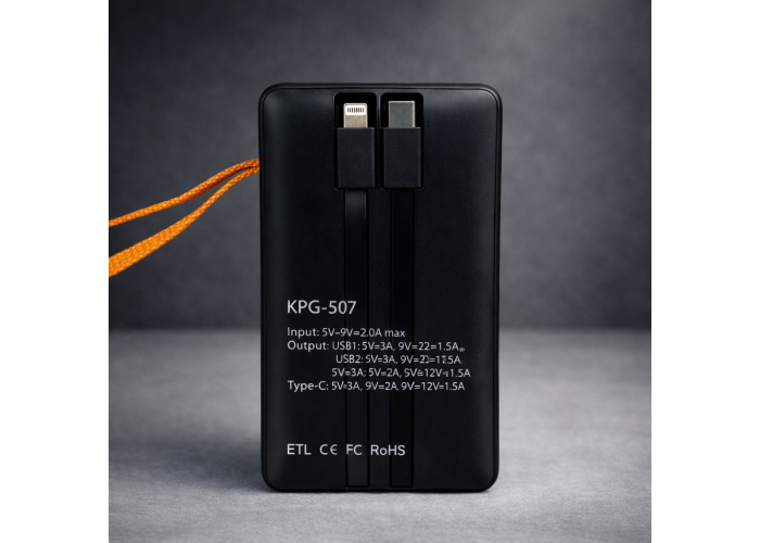 Повербанк KP Decor KPG-507 — це потужний зовнішній акумулятор зі збільшеною ємністю, призначений для тривалої автономної роботи смартфонів, планшетів, навушників, портативних колонок та інших ґаджетів. Дуже добре підходить для поїздок, роботи поза домом, подорожей і ситуацій, коли немає доступу до розетки.