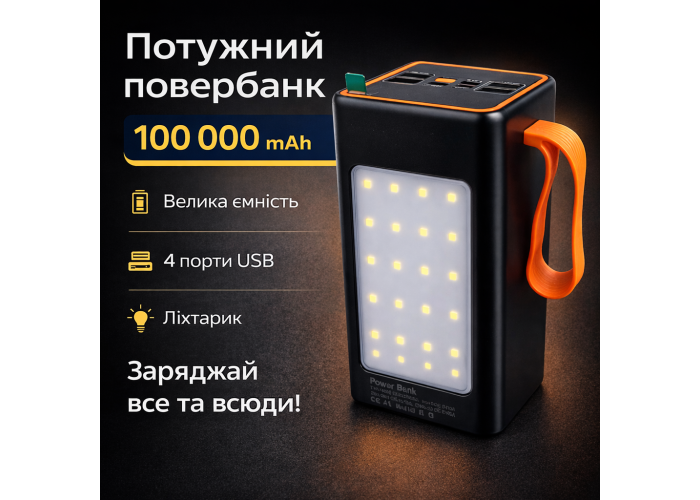 Справжня ємність 100000 mAh — у 2 рази більше, ніж у звичайних PowerBank.