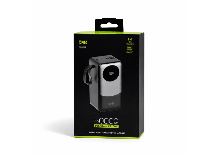 Power Bank 50000 мА·год — потужний портативний зовнішній акумулятор, призначений для автономного заряджання мобільних пристроїв без доступу до мережі живлення. Великий запас енергії дає змогу багаторазово відновлювати заряд смартфонів, планшетів, навушників та інших ґаджетів під час подорожей, поїздок або в повсякденному житті. Підтримка технології Power Delivery (PD) забезпечує ефективне та швидше подавання енергії на сумісні пристрої. На корпусі є цифровий дисплей, який зображає поточний рівень заряду акумулятора, що залишився, що робить використання зручнішим і передбачуванішим для користувача.
