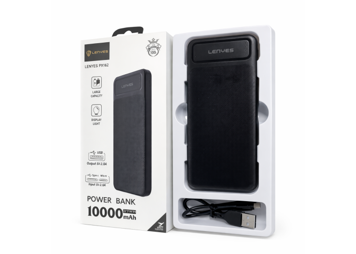 Power bank 10000 mAh Lenyes PX162 — практичний зовнішній акумулятор сумісний із різноманітними видами популярної техніки: Смартфони, Плеєри, Планшети, Навігатори, Камери, Електронні книги та ін.