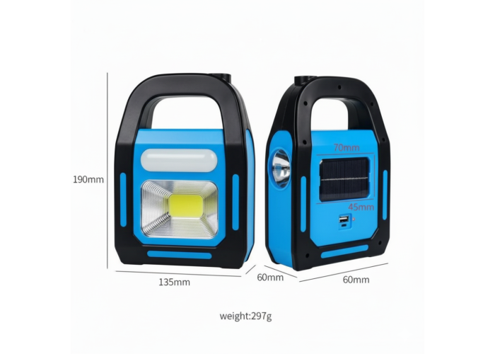 Конструкция: Корпус обычно изготавливается из прочного пластика, алюминия или резины. Компактный и легкий, что обеспечивает удобство переноски. Наличие ручки, крюка или специального крепления для подвешивания.
