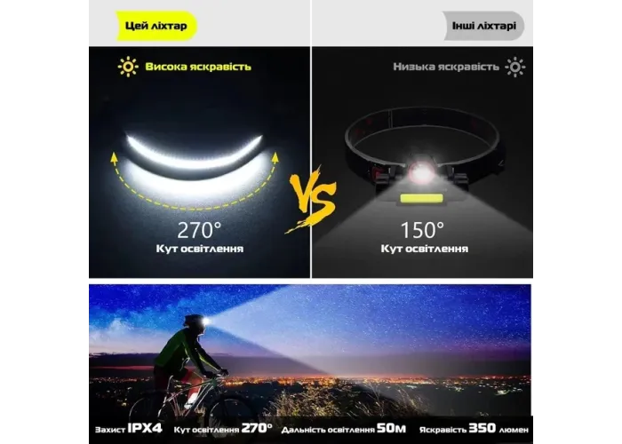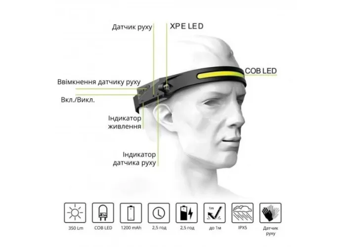Налобный фонарь ALL perspectives induction headlamp с двойным источником света и сенсорным датчиком включения. Налобный фонарь с аккумулятором ― необходимый аксессуар для рыбалки, для бега, для зимы, для охоты, для лыжника, для работы. Налобный фонарь может давать яркий точечный луч, который идеально подходит для узкой дорожки в темноте.
