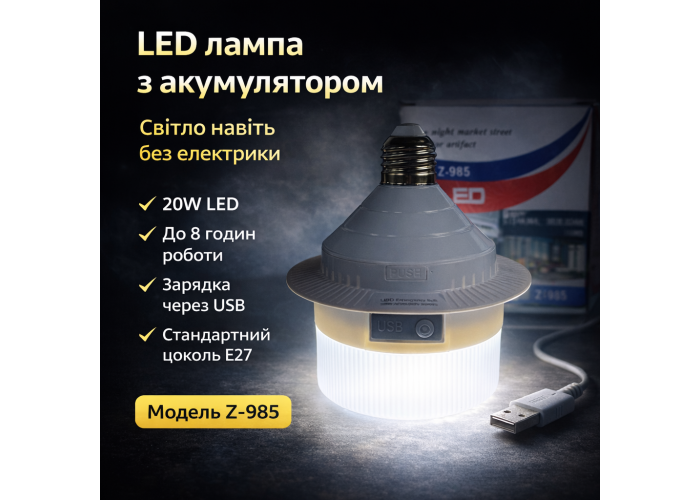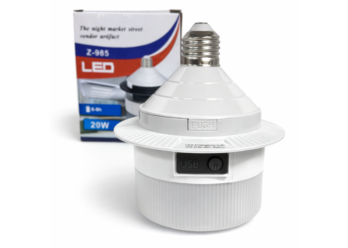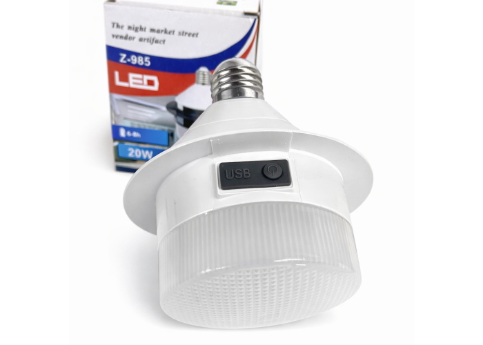 Светодиодная лампа Z-985 предназначена для автономного освещения и может работать без постоянного подключения к электросети. Лампа оснащена встроенным литиевым аккумулятором и поддерживает зарядку через USB, что позволяет использовать её в помещениях и на улице.