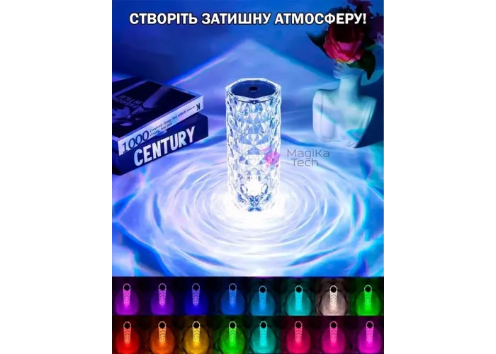 Акриловая светодиодная настольная лампа "Роза" с сенсорным датчиком и пультом. Романтический ночник.