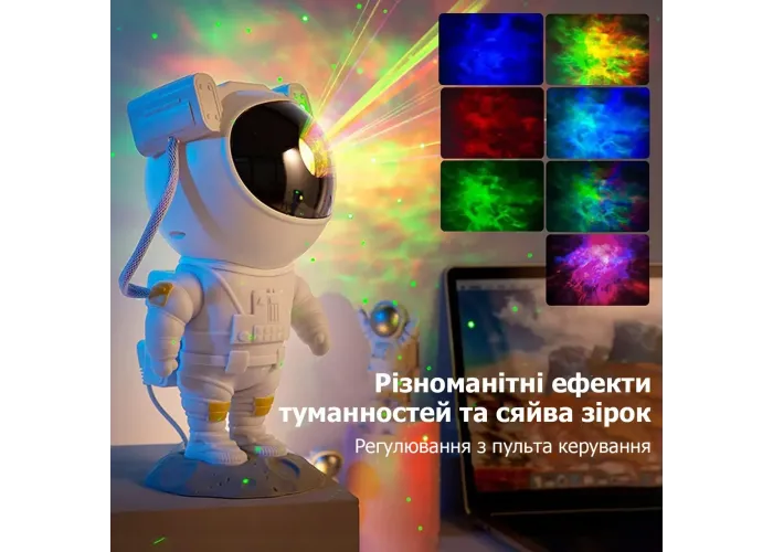 Лазерный проектор Звездного неба «Астронавт» (ASTRONAUT) станет замечательным ночником для юных покорителей космоса и одной из любимых игрушек! 8 разноцветных изображений туманности с регулируемой яркостью звездного неба оживят и украсят не только детскую комнату, но и вечеринку, семейный просмотр кино или игровую комнату. Яркие завораживающие изображения Галактики ночника отправят вас в удивительное путешествие в открытый космос, а разнообразие цветовых эффектов позволят в полную меру ощутить великолепие звездного неба. Лазерный проектор-ночник Космонавт - отличный подарок на День рождения или любой другой праздник, понравится как детям, так и взрослым.