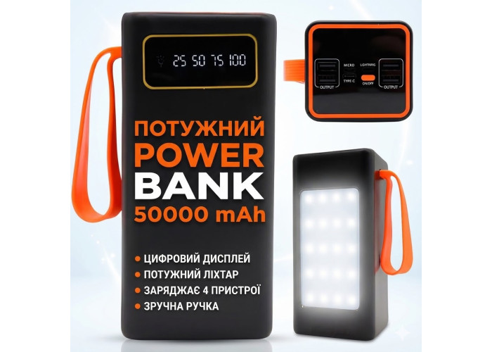 Повербанк JS-658 с емкостью 50000 mAh — это мощный внешний аккумулятор для ежедневного использования, поездок, работы и ситуаций, когда нет доступа к розетке. Подходит для зарядки смартфонов, планшетов, наушников, смарт-часов и других USB-устройств. Позволяет заряжать несколько гаджетов одновременно.