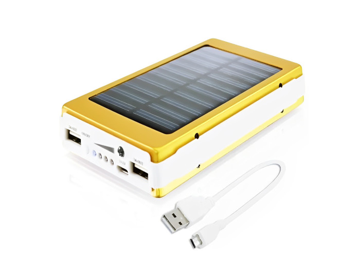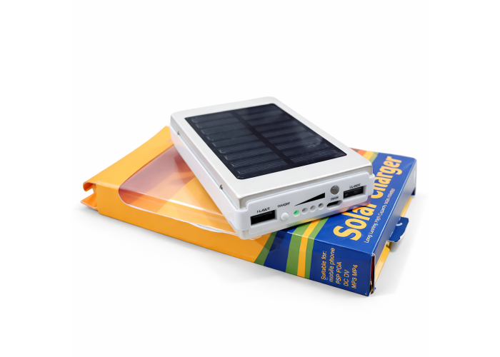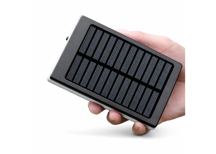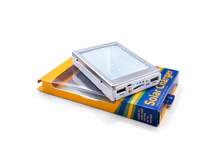 Solar Power Bank – устройство, соединившее в себе компактную солнечную панель и универсальный внешний аккумулятор. Девайс выполнен в корпусе из АБС-пластика и обладает целым рядом преимуществ: – металлический корпус с силиконовым бампером защищает от случайных падений и как влитое держится в руке – универсальность зарядка от электрической сети, USB-портов и солнца – компактность и легкость размеры и вес сравнения с размером обычного смартфона – способность заряжать одновременно 2 устройства предусмотрены 2 USB-выхода – информативность процесса заряда и разряда ряд индикаторов, размещенных на передней панели, сообщат о оставшемся уровне заряда.