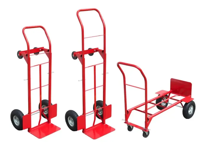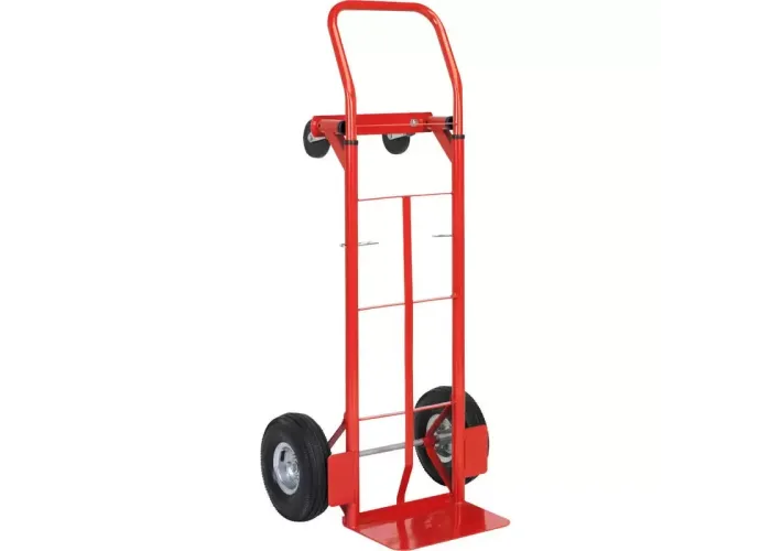 Складская грузовая тележка-трансформер 2-в-1 — это универсальное решение для перевозки тяжёлых и крупногабаритных грузов. Тележка легко трансформируется из классической двухколёсной ручной модели в платформенную тележку с четырьмя колёсами, что позволяет использовать её в самых разных условиях: на складе, в магазине, на стройке или в быту.