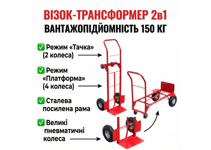 ✔ Формат 2-в-1: ручная и платформенная тележка