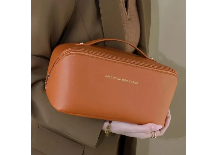 Диагональная застежка-молния проходит через весь корпус, позволяя открывать косметичку на 180°. Это обеспечивает легкий доступ ко всем отделениям и карманам, помогая быстро найти нужное средство.