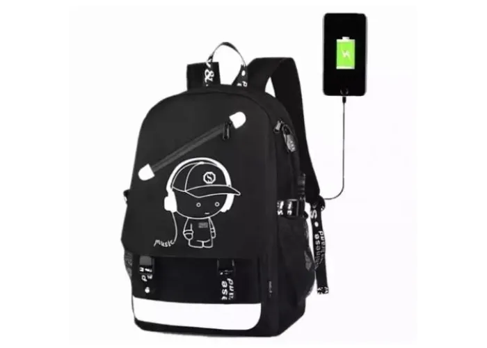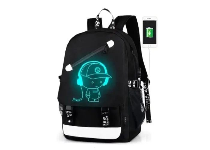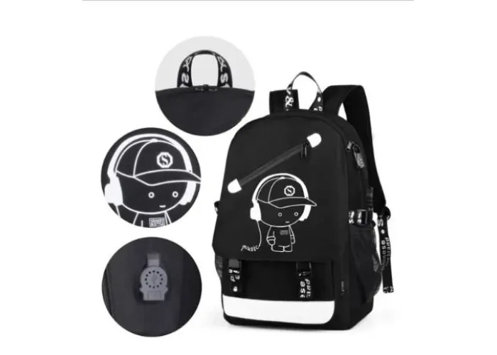 Для того чтобы рюкзак светился в темноте, нужно его подержать на ярком свете и он будет светиться в темноте. Флуоресцентные принты, нанесенные на рюкзак, являются безвредными и безопасными для Вашего здоровья. В дневное время этот рюкзак черного цвета с белым рисунком, но выключите свет - он начнет выделять флуоресцентный свет.