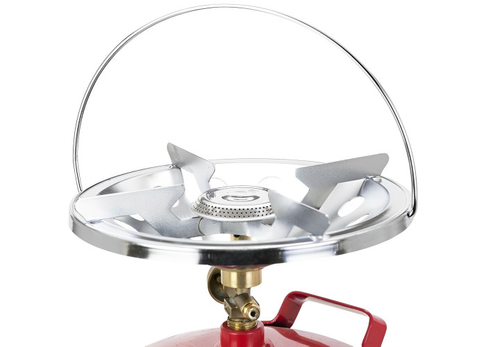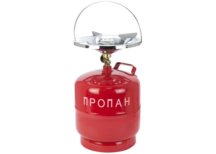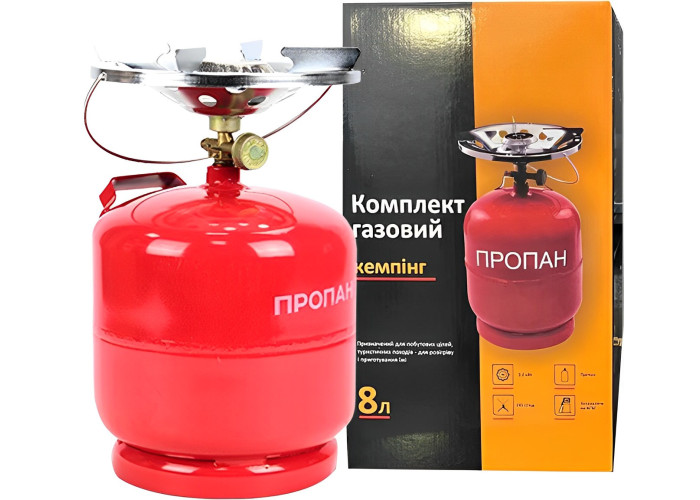 До комплекту входять газовий балон, кран-перехідник і конфорка.