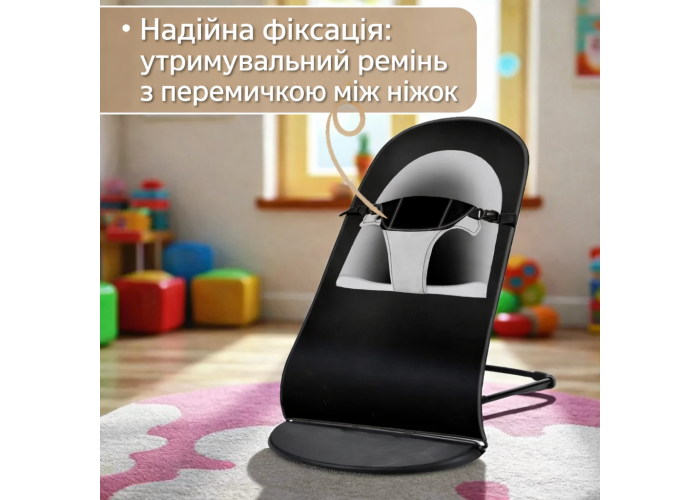 Конструкция устойчива на любой поверхности, быстро складывается и не занимает много места при хранении. Для безопасности предусмотрен удерживающий ремень с мягкой перемычкой между ножек, который надёжно фиксирует ребёнка и препятствует соскальзыванию. Уход прост — съёмный чехол можно стирать вручную или в деликатном режиме.