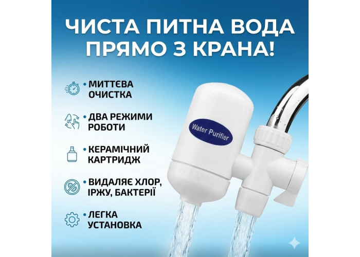 Опис Фільтр-насадка на кран Zoosen Water Purifier — це компактне та доступне рішення для миттєвого очищення водопровідної води в домашніх умовах. Пристрій легко встановлюється на більшість стандартних змішувачів без використання спеціальних інструментів.