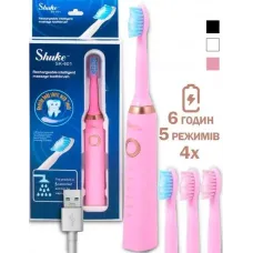 Електрична зубна щітка ультразвукова Shuke SK601-S акумуляторна щітка для зубів з 4 насадки Рожева