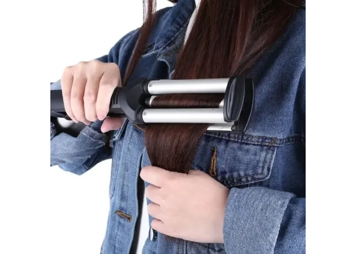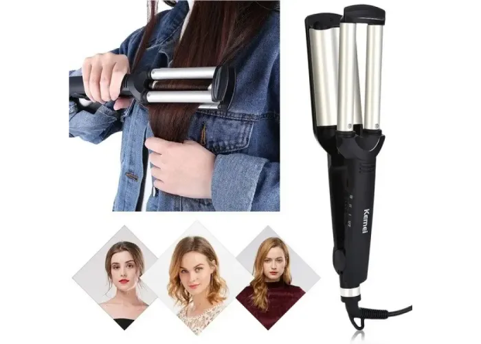 Потрійна плойка Kemei для волосся допоможе швидко, якісно та на тривалий час зробити кучері на локонах різної довжини.