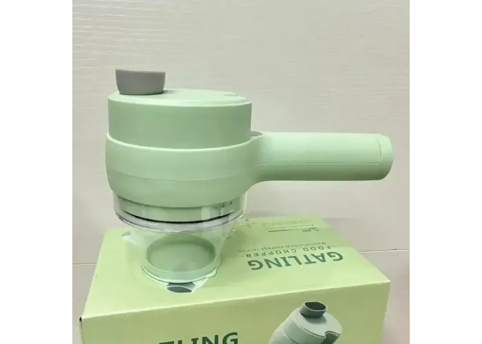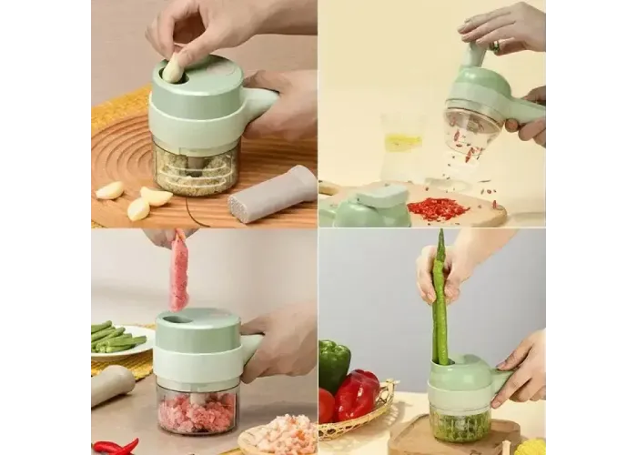 ручний подрібнювач харчових продуктів 4 в 1 обладнаний потужним двигуном, який може швидко нарізати овочі за лічені секунди, що полегшує нарізання овочів для гарнірів і свіжих інгредієнтів. Цілі продукти обробляються без попереднього нарізування. Міні овочерізка — гарний помічник на кухні.