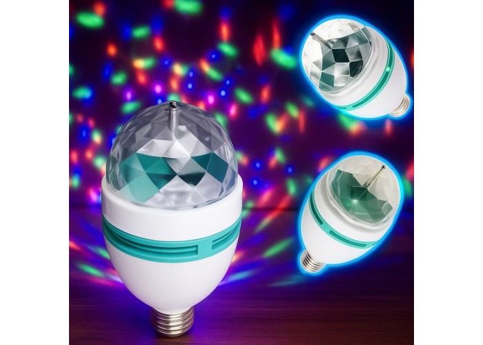У рух LED Mini Party Light Lamp приводиться за допомогою невеликого двигуна. Світлодіодна лампа для вечірок розроблена зі стандартним патроном, що дає змогу використовувати її як звичайну лампочку.