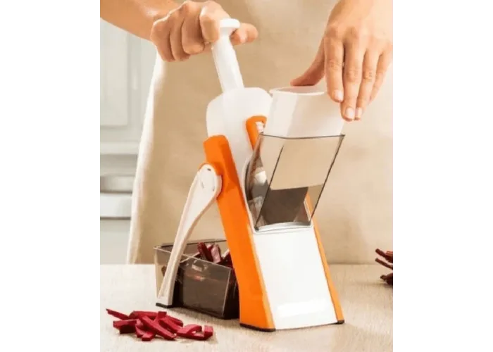 Цей ручний тертка-слайсер Safe Mandoline Slice є багатофункціональним інструментом для нарізання овочів і фруктів. Він обладнаний новим механізмом зі спусковою конструкцією на пружині, що робить його напівавтоматичним і знижує зусилля, які ви маєте докласти. Слайсер також гарантує 100% безпеку, завдяки вбудованій системі з 3 лез та унікальному дизайну.