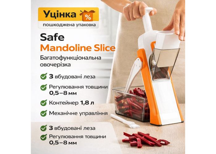 Багатофункціональна овочерізка-подрібнювач Safe Mandoline Slice Універсальна тертка для овочів із контейнером