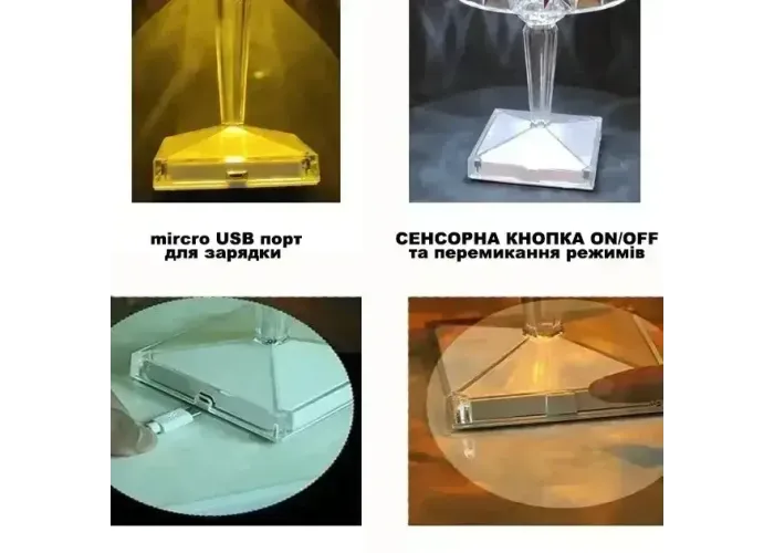Світильник настільний акумуляторний. Декоративний LED світильник Diamond Діамант світлодіодний кришталевий USB.