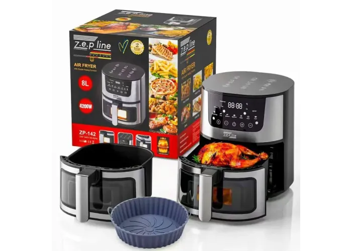 Аерофритюрниця електрична Zepline ZP-142 — фритюрниця з глибоким повітрям, що забезпечує легкий і здоровий спосіб підготовки ваших улюблених інгредієнтів. Використовуючи гарячу швидку циркуляцію повітря й гриль, він здатний зробити безліч страв.