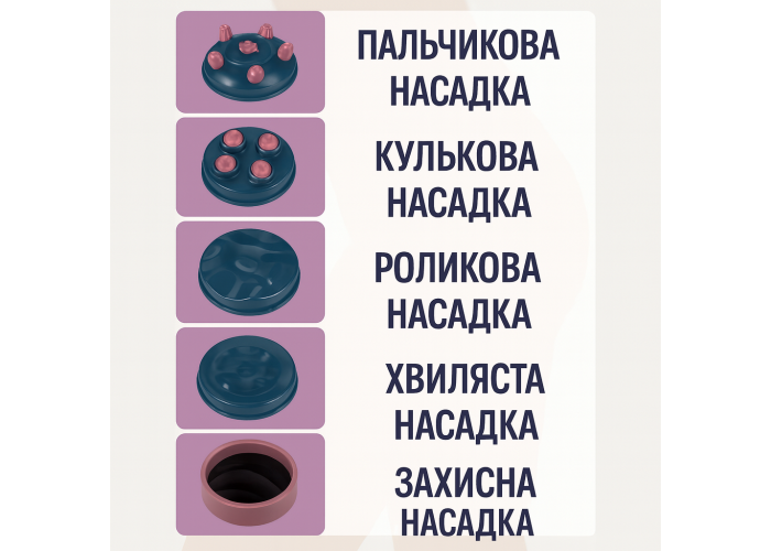 ???? 3 змінні насадки — роликова, хвиляста та щіткова