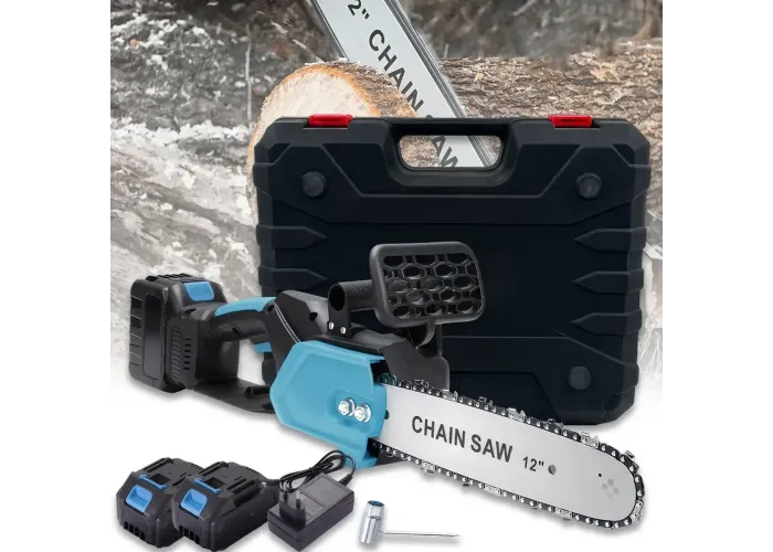 Ланцюгова пила з шиною 12 дюймів і 2 акумуляторами 48 В кейсі Electric Saw Blue