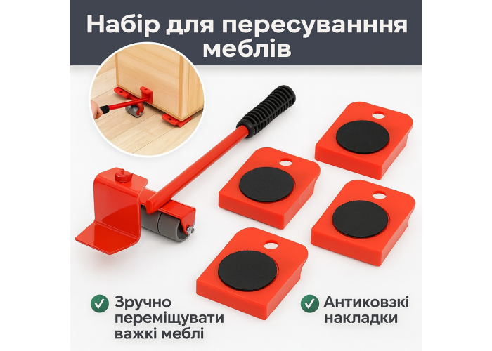 для пересування меблів за допомогою ручного набору немає потреби в додаткових інструментах;