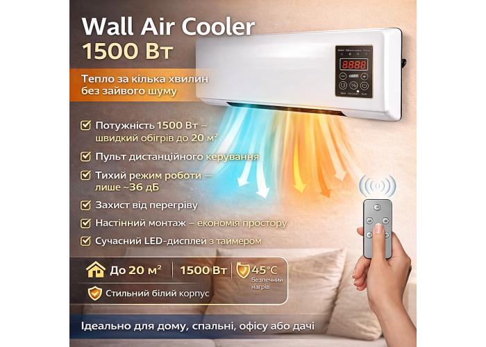 Wall Air Cooler — це сучасний настінний нагрівач, який створює комфортну температуру в будинку без зайвого шуму та енерговтрати.