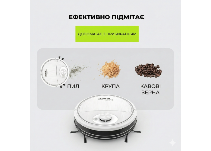 Пилосос SWEEPING ROBOT допоможе підтримувати чистоту та лад у домі. Легкий і компактний робот зможе прибрати навіть велике приміщення. З цим пристроєм не потрібно переживати, що несподівані гості застануть безлад. Робот підходить для використання на рівних підлогових покриттях, чи то кахельна плитка, паркет, ламінат, чи то лінолеум. Прилад дуже тонкий, його товщина становить усього 5.4 см.