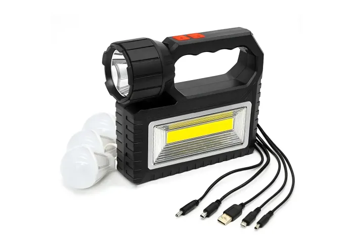 Основний LED-діод потужністю 10 Вт видає яскравий спрямований промінь, а бічна COB-панель забезпечує широке рівномірне освітлення. До комплекту входять 3 виносні лампочки, які можна під'єднувати як додаткове світло — ідеальний варіант для намету, альтанки, навісу або навіть як аварійне освітлення будинку.