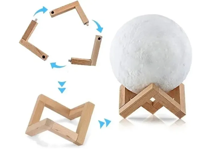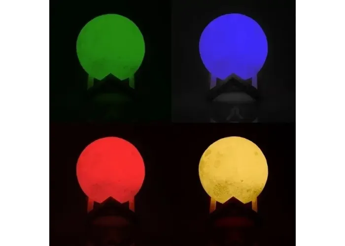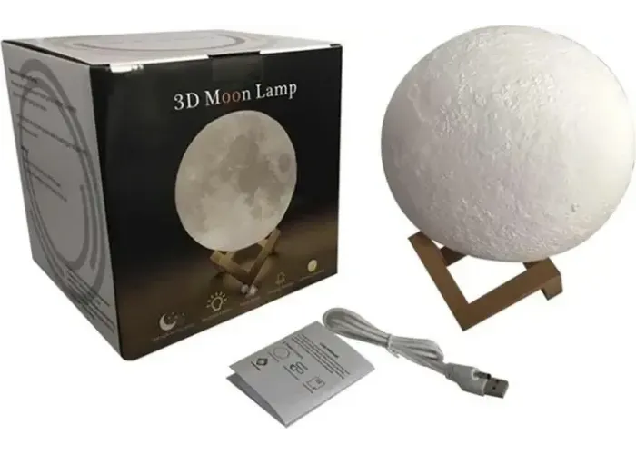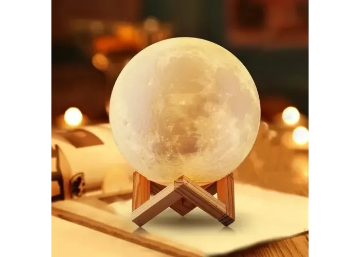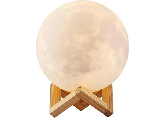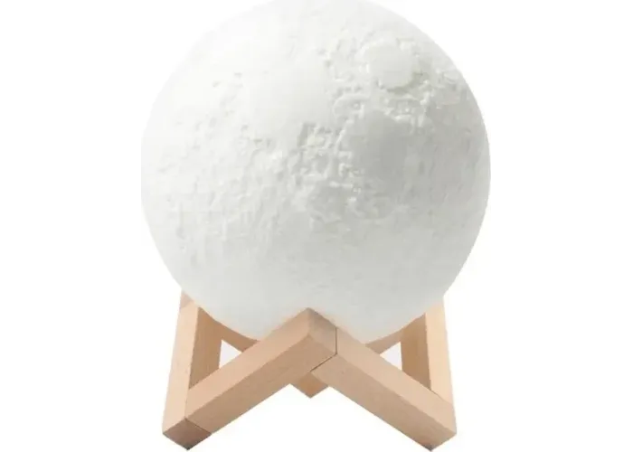 Створює м'яке, тепле освітлення й атмосферу затишку. Корпус, надрукований за технологією 3D-друку, детально повторює рельєф реального Місяця: кратери, морські рівнини та переливи світла. Компактний діаметр 15 см і сенсорне керування роблять світильник зручним як для спальні, так і для дитячої.
