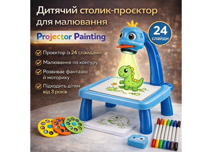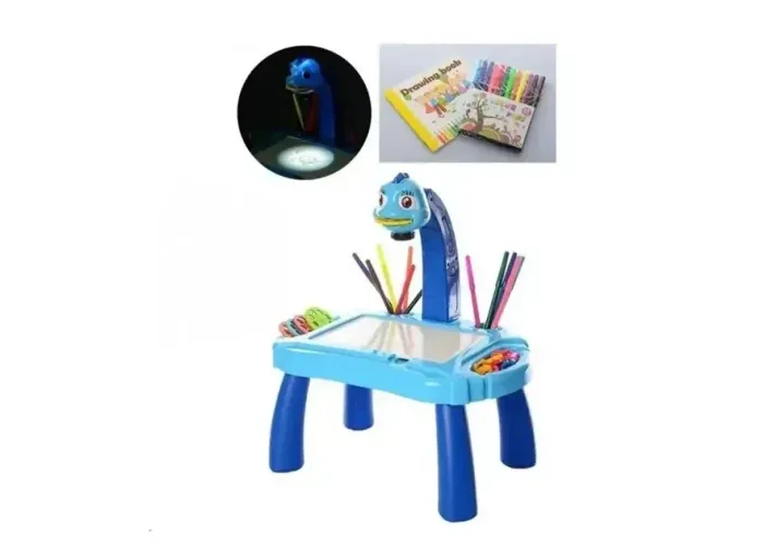 Детский стол для рисования – набор из проектора с 24 слайдами и комплекта фломастеров, поможет Вашему малышу нарисовать свои первые самостоятельные картинки. Развивайте творческое мышление с помощью красиво сконструированного проектора и его слайдов, позволяющих детям часами развлекаться, стимулируя их творческие порывы.