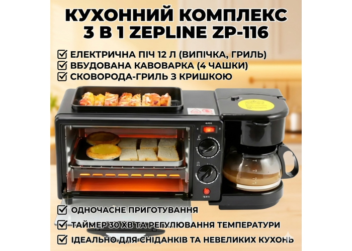 Многофункциональная печь. Оснащена 30-минутным таймером со стеклянной дверцей и может вместить до 4 ломтиков хлеба, 7-дюймовую пиццу и может использоваться для приготовления запеканок, печенья и других вкусных блюд.