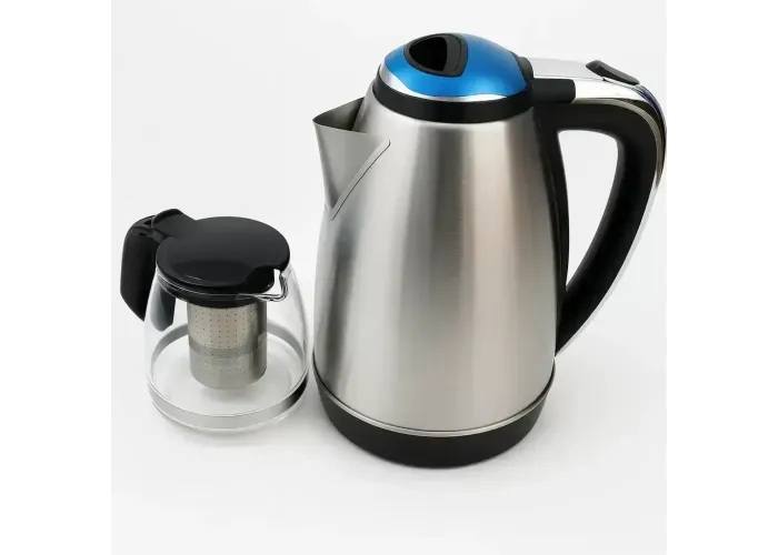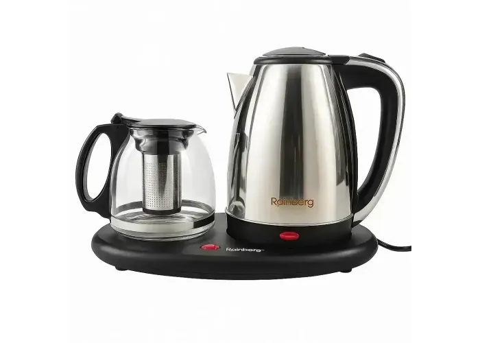 Функциональный комплект для комфортного чаепития. Вам будет чем удивить гостей! Электрочайник и заварник на подставке - оригинальный и практичный дуэт на современной кухне. Чайник снабжен защитным механизмом и его можно устанавливать на подставку в любом положении. Имеет симпатичную форму, удобную ручку для держания, с небольшим носиком позволит быстро и аккуратно налить воду.