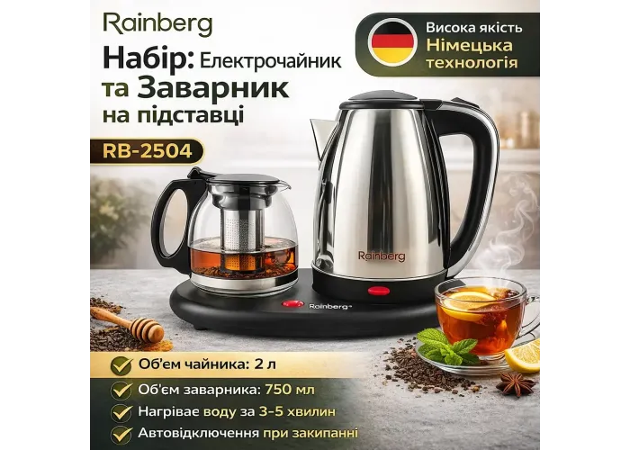 Электрочайник Rainberg 2л + чайник заварник 750 мл