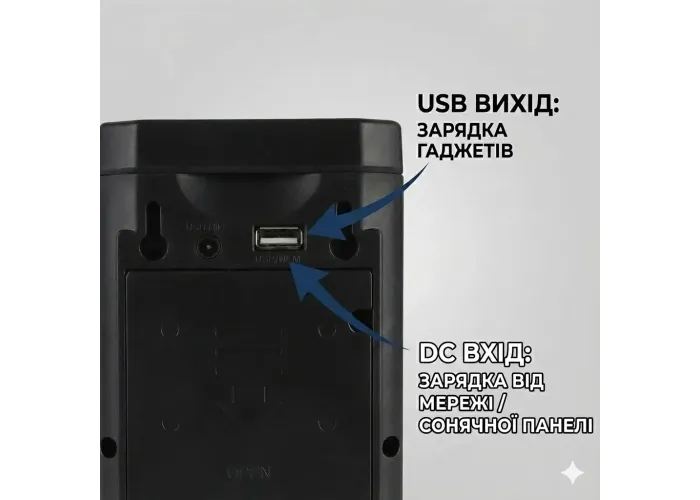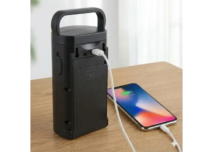 Фонарь можно использовать как настольный светильник или переносной фонарь с ручкой. Он выручит при отключении электроэнергии, на лестничной клетке, в частном доме, мастерской или на выезде. Наличие USB-выхода позволяет при необходимости подзарядить мобильный телефон или небольшой гаджет. Через разъём DC возможно подключение солнечной панели (при наличии), что удобно для автономного использования.