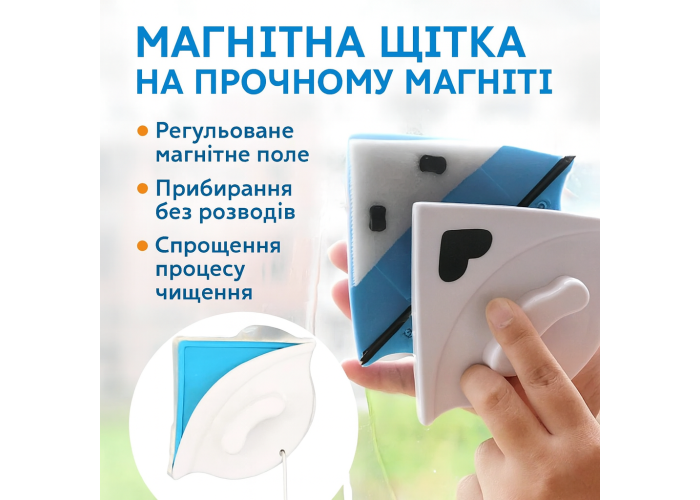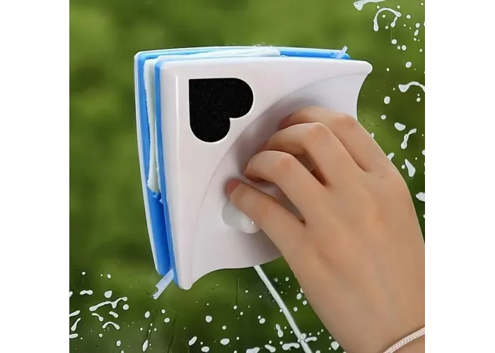 Щетка оснащена двумя магнитами на каждой половине, что обеспечивает надежное соединение через стекло толщиной от 3 до 8 мм. Хлопковые салфетки эффективно удаляют грязь и пыль, оставляя поверхность чистой и блестящей. Эргономичная ручка не только обеспечивает комфортное использование, но и защищает ваши руки от воздействия воды и моющих средств.
