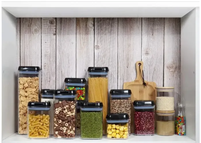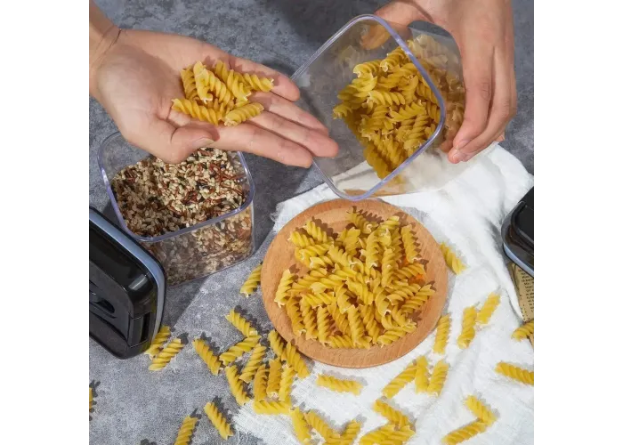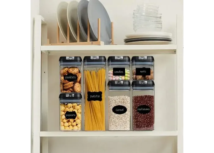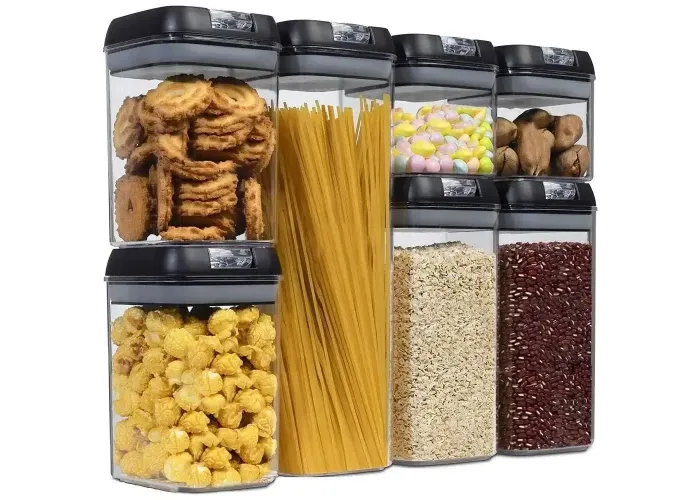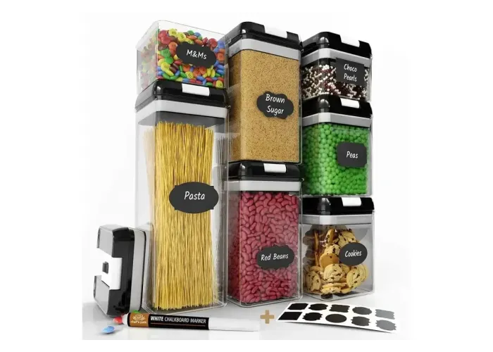 Этот набор контейнеров для хранения продуктов, состоящий из семи предметов, обеспечивает безопасное хранение зерновых, макаронных изделий, закусок и многое другое. Эти контейнеры бывают разной высоты, но все они могут быть штабелированы для экономии места.