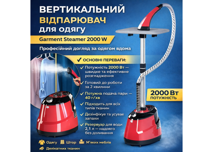 Отпариватель вертикальный для одежды Garment Steamer 2000W Красный Паровой утюг для всех видов ткани