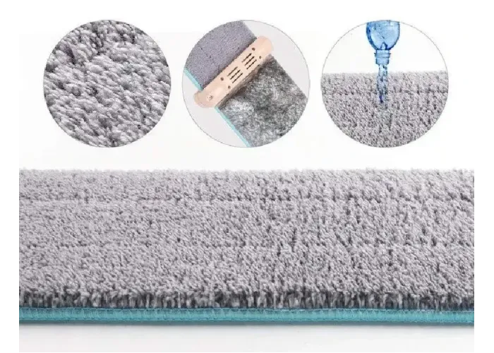 В конструкции предусмотрена специальная насадка с вертикальным отжимом, которая убирает лишнюю воду из микрофибры и удаляет мусор, в том числе хорошо справляется с волосами.