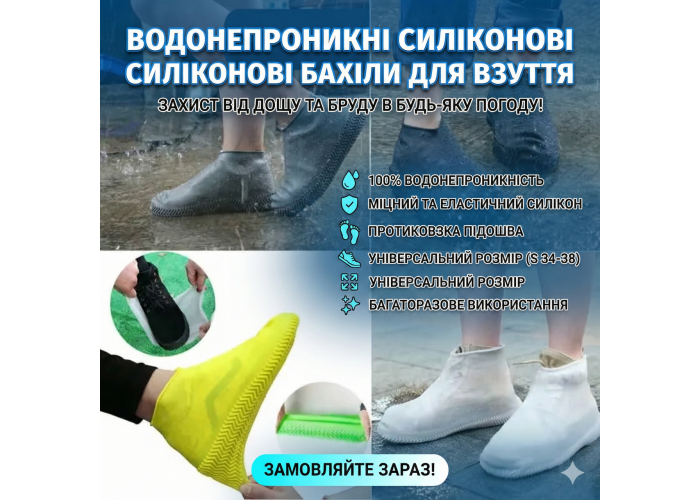 Силиконовые чехлы бахилы для обуви от дождя и грязи Waterproof Silicone Shoe