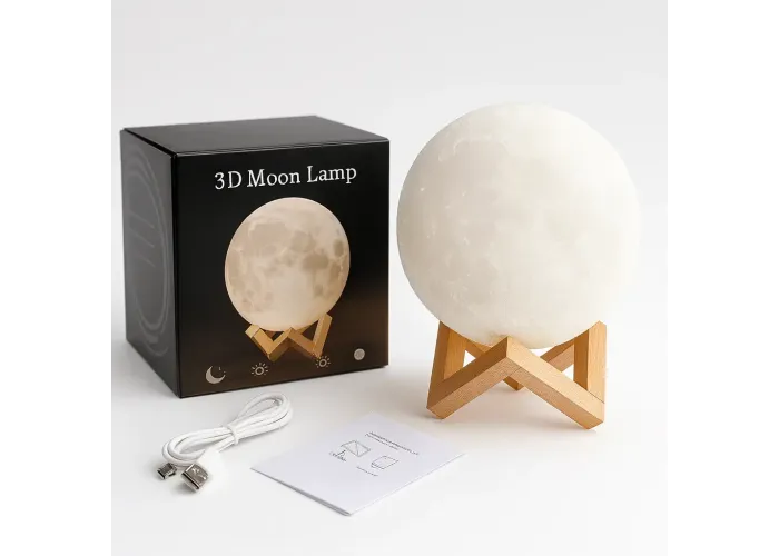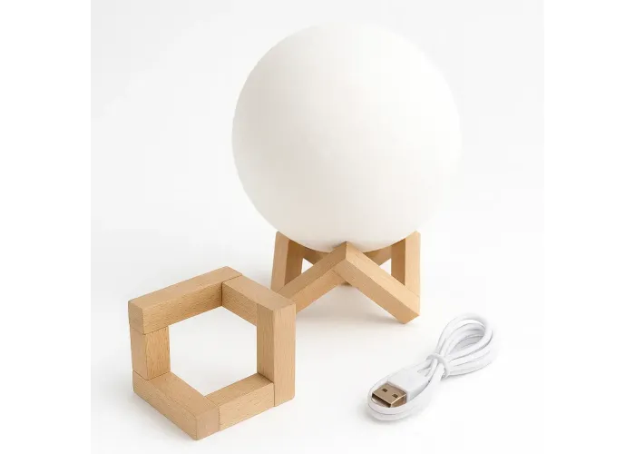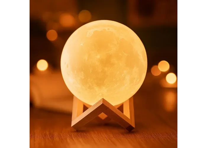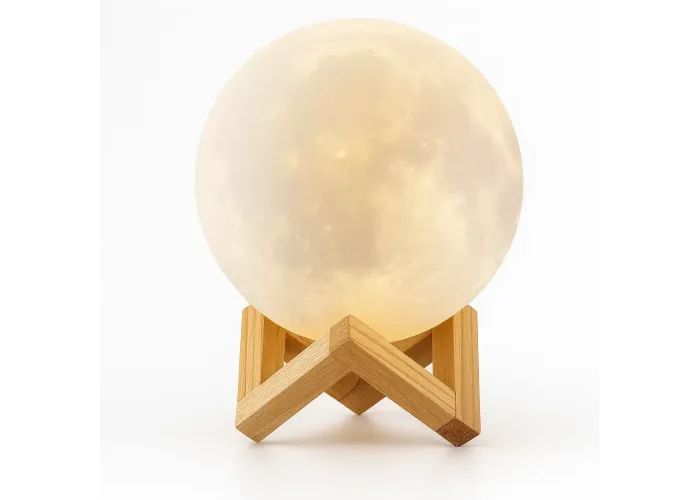 Создаёт мягкое тёплое или холодное освещение и атмосферу уюта. Корпус, напечатанный по технологии 3D-печати, детально повторяет рельеф Луны: кратеры, «моря» и переливы света. Компактный диаметр 15 см и сенсорное управление делают светильник удобным для спальни, детской и как декоративный ночник.