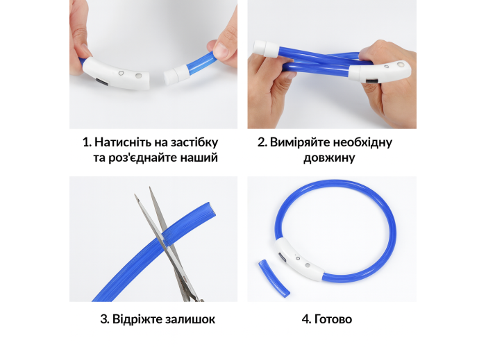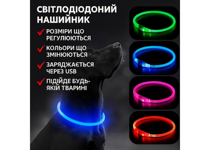 Ошейник прекрасно подходит для прогулок с собакой в темное время суток. Благодаря регулируемой длине ошейник легко подгоняется под размер шеи Вашей собаки. Надежная пластиковая застежка позволяет быстро одеть ошейник на собаку. Ошейник с подсветкой используется только как дополнительный аксессуар к основному ошейнику.