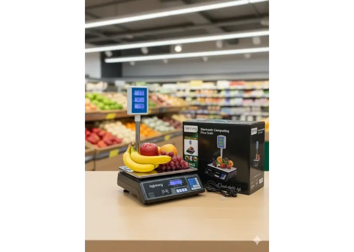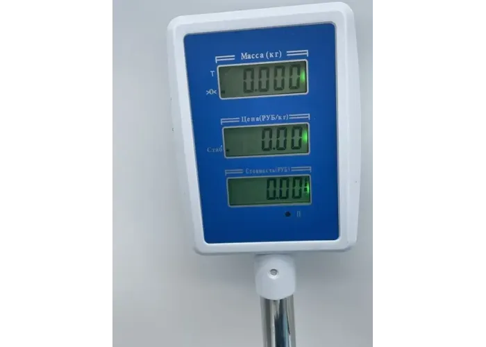 Для удобного взвешивания и расчета предусмотрен двухсторонний дисплей с подсветкой (покупатель-продавец) на который выводится вся информация о весе и цене товара