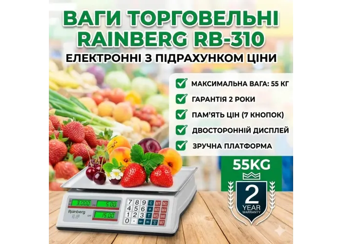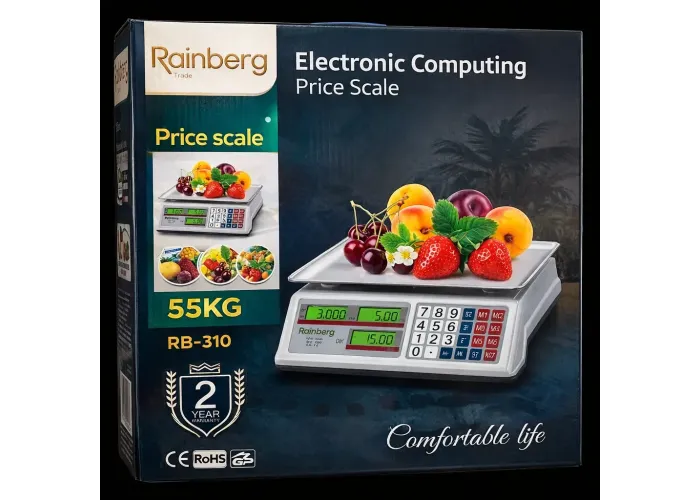 Торговые электронные весы Rainberg RB-310 — это надежное и удобное решение для торговли на рынке, в магазине, на складе или при выездной торговле. Весы оснащены функцией подсчета стоимости товара, что значительно ускоряет процесс обслуживания покупателей.